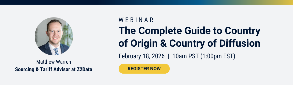 To learn more about Z2Data and how its COO, COD, and COA insights can help your organization understand its tariff exposure, schedule a free trial with one of our product experts.