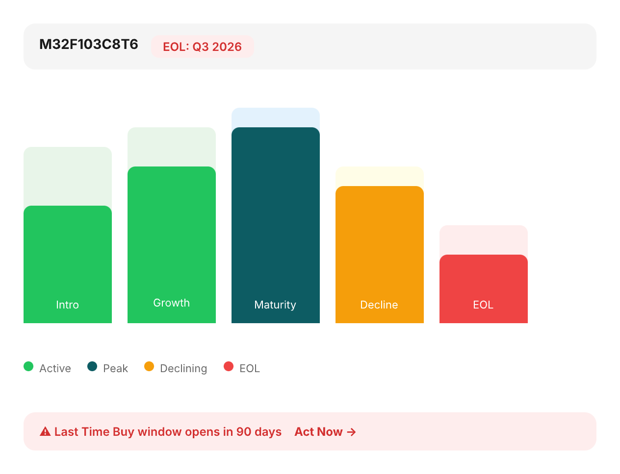 Proprietary lifecycle forecasting with 90%+ accuracy — know what’s going EOL before it’s too late.